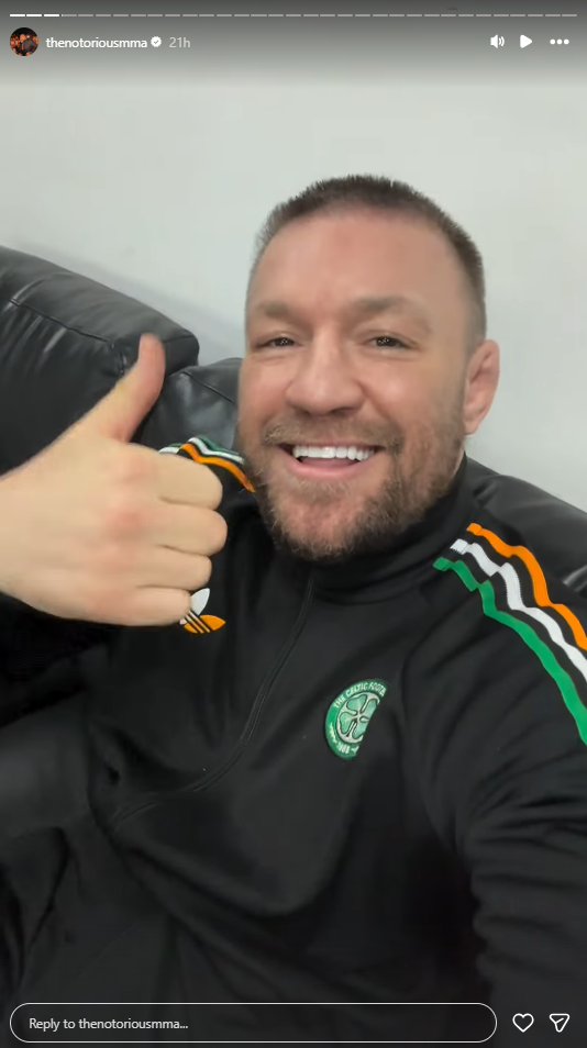 The MMA star posted a story on his profile which showed him grinning for the camera while beaming: "Up the Celtic and the Irish."